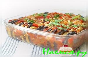 Помидоры и кабачки нарезать кружками,толщиной как баклажаны.Морковь нарезать тонким ломтиком,лук-колечками,чеснок-лепестками.Перец чили тонко нашинковать.