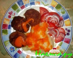Котлеты получаются сочные, можно есть без гарнира, так как там достаточно картофеля.