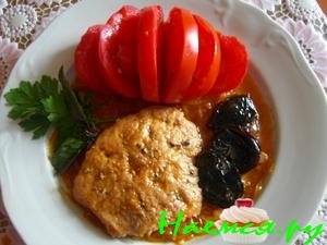 5.Добавить помидоры в почти готовое мясо и поставить в духовку (t 200°) на 10 минт
