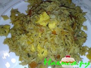 Болгарский перец порезать соломкой,тоже в ту же сковороду. Обжарить овощи.
