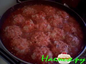 Уложить в кастрюлю, залить соусом и варить 30 минут.