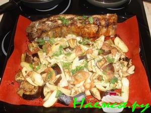 Сверху выкладываем мясо.Форму закрываем фольгой.