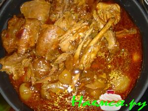 в кастрюлю добавить чеснок, кусочки кролика и обжарить до корочки
