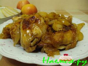 Обжаривать яблоки, пока сахар не начнет превращаться в карамель ( лук лучше удалить, иначе он сгорит).