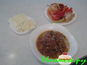 Баранину нарезать кусками залить холодной водой и варить 1—1,5 часа под крышкой на умеренном огне, после чего мясо вынуть из бульона, обжарить с луком в масле, потушить до полной готовности, добавить мелко нарезанные помидоры, слегка потушить до полного выделения из них сока и вновь залить остатками бульона уложить крупно нарезанную картошку, посолить, затем заправить перцем и довести до кипения.