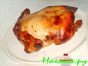 кожу курицы внутри смазать специями, наполнить фаршем, зашить.