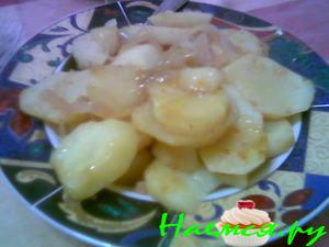 Берем картофель и яблоки в пропорции примерно 50 на 50. Нарезаем большими кубиками.