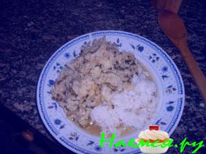 Пусть повариться минут 15-20 на среднем огне. Подавать с рисом. Для тех кто поститься , без мяса , добавим кубик овощного бульона. Мои едят без мяса и очень хвалят!!