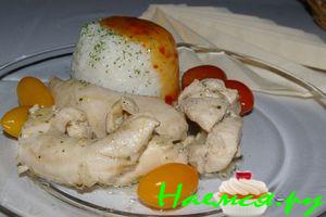 В жаропрочную посуду выложить капусту, сверху рулетики, помидорки, залить сливками. Накрыть фольгой и отправить в духовку на 30 минут. Снять фольгу и еще 5-10 минут подрумянивать.