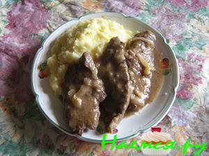 Говяжья печень под яблочно-луковым соусом