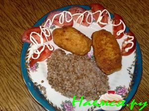 Сформировать овальные плоские заостренные котлеты. Обмакнуть во взбитое яйцо. Обвалять в сухарях и жарить с двух сторон на кипящем масле 8-10 мин до румяной корочки.