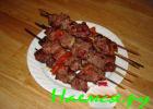 Обжаренный шашлык снять с шампура, нарезать тонкими ломтиками, а на гарнир подать салат из овощей.