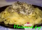 Разморозить морепродукты; положить их в сковороду; тщательно перемешать, добавить соль и перец; тушить (на среднем огне) примерно 10 минут. Полить этим соусом макароны; тщательно перемешать.