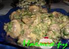 Затем добавляют молодой горох (или консервированный) и тушат до полной готовности. При подаче на стол посыпают измельченной зеленью.