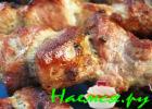 Кусочки мяса посолить, посыпать чесноком, молотым черным и душистым перцем, сбрызнуть уксусом.