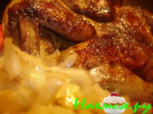 Подготовленного цыпленка натереть изнутри и снаружи молотым перцем, смазать маслом и растертым с солью чесноком. Поместить в сотейник, добавить остальное масло и кетчуп Calve, закрыть крышкой и запечь в духовке до готовности.