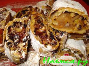 готовому пирогу дать остыть.нарезать на кусочки и покрыть сахарной пудрой.