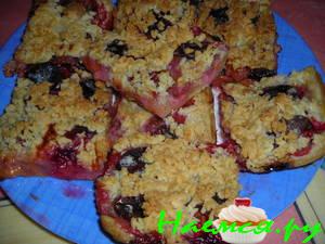 Муку и сливочное масло перемешать вручную, добавить сахар. Этой посыпкой присыпать сливы.