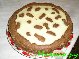 Оставшуюся часть теста рвём на кусочки и выкладываем сверху - пятна жирафа.