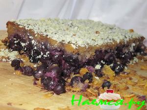 Сверху ровно высыпаем замороженную бруснику,уровень брусники должен быть на одном уровне с бортиками сириально-ореховой смеси.