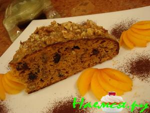В тесто добавить изюм и половину грецких орехов.