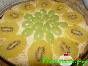 В смазанную маргарином форму выложить половину нормы теста, сверху уложить начинку, затем - оставшееся тесто. Выпекать минут 30 при 220 градусах.