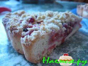 Дрожжевое тесто раскатать ,выложит на противень,сделать бортики.На тесто выложить яблоки порезанные тонкими дольками.Присыпать их сахаром,сверху сделать жгутики из теста.Поставить запекать примерно минут 30.Когда будет готов вытащить пирог,посыпать его брусникой(можно замороженой)и сверху залить сметаной взбитой с сахаром.Дать постоять для пропитки минут 20.