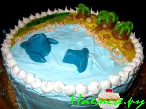 Сначала варим сироп из 300 г. (это 1,5 стакана) сахара и 0,5 стакана воды. Сироп нужно сварить до пробы "на мягкий шарик" т.е. до такого состояния, когда капля сиропа на блюдце после непродолжительного остывания скатывается пальцами в мягкий шарик. Горячий сироп выливаем в форму (форму ничем не смазывать!) и распределяем кисточкой по дну и бортикам равномерно. Сироп сразу же схватывается корочкой.