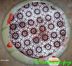 готовому кексу дать остыть.освободить от формы и залить глазурью.