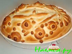Тесто должно подняться,обмять его и поставить опять подниматься.Снова обмять и можно приступать к формовке пирога.На этот пирог у меня ушла ровно половина от всего замеса.
