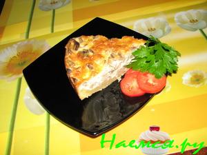 Смазать форму маслом и вылить в нее 2/3 теста,далее грибы, укроп,тертый сыр и оставшееся тесто.