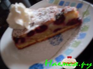 Я давно хотела сделать пирог с вишней….. и собиралась его делать малость по-другому…. Но на пакетике с разрыхлителем нашла вот такое тесто, решила попробовать.