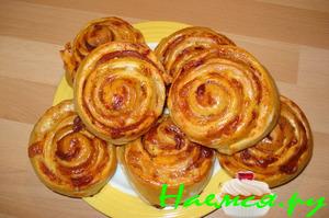Начинка укладывайте начинку в любом порядке, только сыра должно быть два слоя и один из них верхний.Выпекать до готовности.