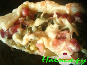 Пицца с зелёной фасолью и маринованым огурчиком