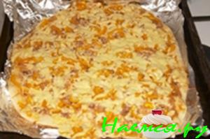 И последний вариант: на 1 стакан теплой воды 1 дисертную ложку дрожжей, 2 дисертные ложки растительного масла, муки сколько пойдет, примерно 3 стакана, чтоб тесто к рукам не прилипало. Тесто откладываем на час, чтоб подошло в тепле. Затем руками раскатываем в лепешку и обмакаем в манной крупе. Размещаем на смазаную совороду. Начинку на свой вкус. Я предпочитаю жаренные грибы, дольки помидора, отварную грудинку и обильно посыпать голландским сыром. Выпекать до полной готовности.