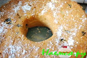 делаем из сахара пудру и посыпаем готовый кулич-кекс