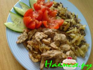 Мясо обжарим маленькими порциями на сухой сковороде,отставим остывать.