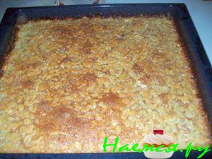 разогреть на маленьком огне масло с сахаром, добавить миндаль, в конце молоко, когда пирог чуть подрумянится, вытащить намазать этой массой и снова в духовку на 5 мин. запечь до золотистого цвета! Получается такая корочка красивая как на Bienenstichtorte почти. Попробуйте.