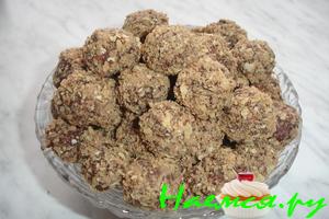все ингридиенты для теста смешать, тесто вылить на протвень и выпечь в духовке на среднем огне.Потом дать остудить , выдавить рюмкой шарики.