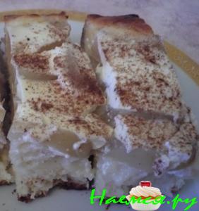 6.После выкладывает тесто на протвень(заранее смазанный маслом)и кладем любую начинку( варенье, а так же можно свежие фрукты -- яблоки, груши, сливы...)