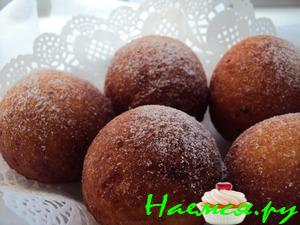 Замесить тесто, раскатать. Вырезать небольшие кружочки. Жарить во фритюре. Набухают и становяться как маленькие колобки, сами переворачиваются в масле. Остается только вынуть.