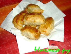 Выложить на противень, запекать до румяной корочки. Сыр внутри расплавляется и впитывается в тесто.