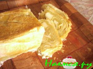 Рулет из слоеного теста с начинкой из фарша и свежей капусты