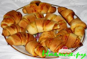 8. рогалики выкладываем на противень и выпекать 15-20 мин при температуре 180-190 градусов.