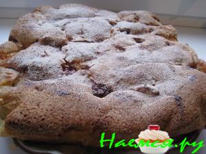 взбить яйца с сахаром, добавить муку и еще раз взбить.Форму для мультиварки смазать сливочным маслом, выложить на дно порезанные дольками и очищенные яблоки, залить тестом. Поставить на режим "выпечка" на 60 мин, после выпекания открыть крышку и оставить до остывания, затем вынуть из формы.