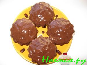 В формочки выкладывать по столовой ложке теста, положить 1.5-2 ч.л. вареной сгущенки.