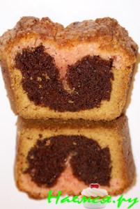 Растереть масло с сахаром. По одному добавлять яйца, тщательно взбивая после добавления каждого. Добавить сметану. В отдельной миске смешать венчиком муку и разрыхлитель. Добавить мучную смесь к масляной. Перемешать миксером. Тесто разделить на три части. В одну вмешать ложкой порошок пудинга, во вторую-порошок какао и в третью- порошок желе.В смазанную маслом и присыпанную мукой форму выкладывать по очереди слои. Сначала белый, на него коричневый, а сверху красный.Выпекать в предварительно разогретой до 175-180Ц духовке, в течении 60 минут. Проверить на готовность деревянной лучинкой. Полностью остудить, прежде чем нарезать.