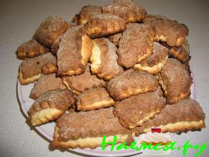 Каждый ромбик окунаем во взбитые яйца,а потом в сахарный песок.