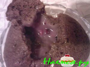 По 1ст.лож. выкладываем тесто в формочки (обычные смазываем, силиконовые ополаскиваем водой). Кладем по кусочку шоколадки и слегка вдавливаем в тесто.