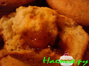 В формочки налить немного теста, выложить мороженную ягоду,положить остальное тесто, заполнив формочки на 2/3 объёма.